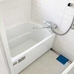 全面白いタイルの浴室となっていました。浴槽も古いタイプで経年による汚れ黄ばみ等がみられました。