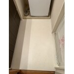 下地から張替をおこない、クッションフロア・ソフト巾木はお色味がホワイトベースのものを選定させていただくことで以前の洗面脱衣場よりも明るく広々としたスペースになりました。