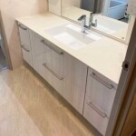 今回は主に、浴室、トイレ、洗面のリフォームをご希望です。洗面化粧台は大きな鏡が特徴の落ち着いた大理石模様がおしゃれで気に入っていたのですが、収納は開き戸タイプだったので、奥のものが取り出しにくかったり、こまごまとした普段使いのものがしまうところが無くて、いつも出しっぱなしになっているのが散らかった感じがしていました。新しいものは収納のし易さとキレイにお手入れし易いタイプのお洒落な雰囲気のものを選びたいと思っています。全体的に清潔感とくつろいだ雰囲気がありつつも、お洒落な感じにまとめていただけたらうれしいです。