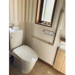 経年劣化による温水便座の故障がきっかけでトイレのリフォーム工事をお任せいただきました。 以前は温水便座と一体型のトイレをご使用でしたが、便座のみの交換が出来ずトイレ本体ごと交換工事を承りました。今後、便座部分のみが取り換え可能な組み合わせ式トイレLIXIL「アメ―ジュ」を提案。清掃性を高めたいとご希望でしたので、腰の高さまでパネルを施工しました。汚れがしみ込まずにサッと拭き取れお手入れが簡単です。 クロスはベーシックなグレー調のストライプ柄を選定し、清掃性×デザイン性が叶ったレストルームが完成しました。