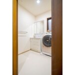 収納が少なく掃除がしにくく、家族の洗濯物を干すスペースがなく不便。 洗濯物を干すスペースと収納が多く掃除がしやすい、壁から出るタイプの蛇口の洗面台がご希望でした。