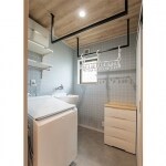以前は、玄関近くに浴室・洗面脱衣室があり、T様ファミリーがこれから長く住むには、いまいち使いづらい間取りでした。 洗濯を簡潔にこなせる間取りにプランニング。 独立したランドリールームでは、洗濯機を回して、洗濯物を干して。乾いたら、隣接するファミリークローゼットへ収納するまでの洗濯効率がアップ。 マンションで暮らしていた時よりも家事時間短縮になり、ご家族のコミュニケーションする時間が増えたと喜んでいただけました。