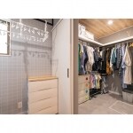 以前は、玄関近くに浴室・洗面脱衣室があり、T様ファミリーがこれから長く住むには、いまいち使いづらい間取りでした。 洗濯から収納までを簡潔にこなせる間取りにプランニング。 3階建て住宅で部屋数が多い分、仕舞う場所があちこちに点在しないよう、ご家族分のお洋服を1箇所にまとめて収納するファミリークローゼットを1階に設けました。 独立したランドリールームを隣接させて、洗濯機を回してから干して、仕舞うまでの洗濯効率がアップ。 マンションで暮らしていた時よりも家事時間短縮になり、ご家族のコミュニケーションする時間が増えたと喜んでいただけました。