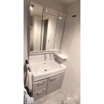 今回ご採用いただいたのはタカラスタンダードのオンディーヌ。 オンディーヌは出し入れしやすい手元収納で、よく使う小物類はスライドポケットへ。使いやすい手元で収納できます。洗面下の収納は、小物収納に便利な引出しと扉の組合せにしました。洗面化粧台としての機能もしっかりと備えられています。