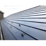 既存のパミールの上にルーフィング(防水紙)を貼って、ガルバリウム鋼板材を貼っていきます。 ガルバリウムは降雪時に雪がものすごい勢いで滑って落雪しますので、雪止め金具は必須です。