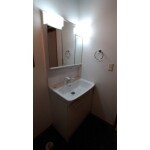 ミラー裏が収納となる3面鏡の洗面化粧台をお取り付けしました。