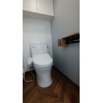 手洗いの無いタイプのスッキリとしたトイレをお選びいただきました。 ペーパーホルダーはお客様にご用意いただき、ウッド調が可愛らしい空間になりました。
