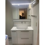 内装や水回りの設備の汚れや劣化が気になり、リフォームしたいとのことでご連絡いただきました。 化粧品などの細かい収納がしにくいようでした。 洗面の交換とあわせて洗濯パンと洗濯水栓の移動と交換、コンセントの増設、タオル掛け交換、分電盤の移動をしたいとのことでした。