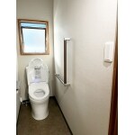 トイレ横に手すりを取り付けますことで、立ち上がる動作の際、お体に生じるご負担を減らせるようになっております。