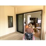 今までリビング南側のサッシから出入していたが、ウッドデッキを設置し掃き出しサッシをリビング横に設けることで車いすでの出入りがしやすくなった。