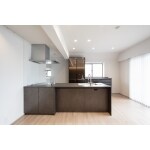 キッチンをオープンにしてリビングとつなげ、広い空間を実現する間取りを提案しました。パイプスペース部分をパントリーにし、十分な収納も確保しました。