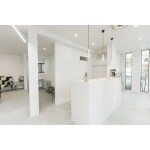 モールテックス仕上げの受付カウンターをご提案いたしました。内装クロスの白に合わせながらも、モルタルのような質感があり壁紙とは違う高級感がございます。カウンター下を収納にすることでお客様からは見え辛くスッキリ片づけることができるようになりました。全体を見渡せ間口を広くとっておりますのでスムーズに動けます。