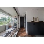 玄関収納、建具、フローリングの色をすべて一新!お施主様お好みの空間に生まれ変わりました。また、大きな窓の窓枠や建具の枠も塗装で白に統一をしました。