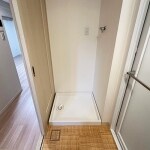 洗濯機がピッタリフィットの横幅。右側浴室前の限られたスペースを上手に活用された空間であることが分かります。