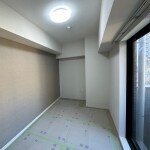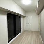ファミリー向け賃貸用として貸し出すためのリフォームをお願いします。こちらは二部屋ある洋室の細長いお部屋になります。絨毯が敷いてありましたが、汚れやすさ、手入れのし難さ、埃・ダニ等を気にされる方が多い時代ですので、フローリングに変えていただきたいです。広い大きな掃き出し窓で明るさを取り、風通しが良いお部屋となっています。他のお部屋とデザインを合わせて頂ければと思います。
