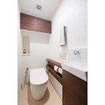 お掃除のしやすいトイレ本体以外にも、空間にすっきりと納まるノイズレスデザインの手洗い器、収納キャビネットなど+αのご提案。