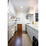 間取り変更をして対面キッチンを実現しました。お手入れのしやすいシンク、レンジフードや食洗機を採用して家事の時短効率に配慮しました。