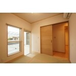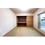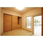 東側に大きな窓とガラス全面ドアがあるので明るく風通しの良い和室です。