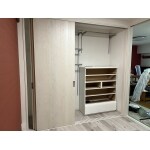 和室入口を狭くした分を収納スペースにしました。 洋服をたくさん掛けて収納できるよう、可動式ハンガーパイプを取付しています。この収納の正面にあった押入もクローゼットにしていますので、収納スペースがかなり広がりました。