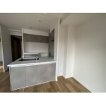 キッチンはハウステック マルーレ:シンク下オープンタイプ、 カップボードもお揃いで取付しました。 レンジフード背面壁のリビング側の収納は撤去し、スペースを作るだけにしました。お好みの棚板をお客さま自身で取付できるように、下地補強までしています。