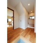 こう配を緩やかに。とても昇り降りが楽になりました。階段下は収納にしてスペースを活用。
