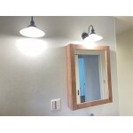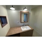 造作風のおしゃれな洗面化粧台です。 照明器具はお客様支給品です。
