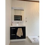洗面化粧台は経年劣化が感じられたので、生活感が出にくいよう三面鏡での交換リフォームを提案しました。