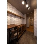キッチンは臭いなどが漏れないよう囲まれた空間の中に配置し、タイルやおしゃれなカップボード家具等トータルコーディネートさせていただきました。