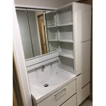 引出収納で小物もスッキリ片付く洗面化粧台に取替え工事
