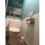 フローリングの劣化や、手洗い時の水の飛び散りにお困りであったトイレリフォームを承りました。 便器内で渦を巻くように汚れをしっかりと洗い流してくれるトルネード洗浄が決め手となり、ピュアレストQRの設置に至りました。ご心配されていた水の飛び散りも、手洗い器が深く設計されているため安心して使用頂けます。 内装はSNSでアイデアを探しつつ、サンプルを取り寄せて悩みながら決定しました。ウッド調を取り入れたいというご希望と、遊び心を取り入れるためアドバイザーが提案した上下セパレートで貼り分けたクロスで、素敵な内装のトイレ空間が完成しました。