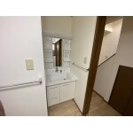 洗面化粧台を取替え、天井・壁クロスと床材クッションフロアを張替えました。