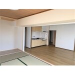 和室の押入れは撤去して、床材を貼りました。リビング~和室間は可能な限り開口して一体の部屋としました。とても開放感のあるLDKとなりました。
