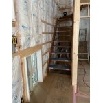 面積を控えめに設置できるかね折れ階段を提案しました。手すりと滑り止めも設置し安全性にも配慮しました。使い勝手もデザイン性もアップする一段目の踊り場もおすすめしました。