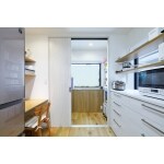間取り変更をして広々と明るいLDKを実現しました。 書斎を家電置き場・作業用デスクスペース・パントリーに変更し、キッチン空間を充実させました。