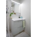 洗面室に幹太くんを設置。天候に左右されず洗濯物を乾燥できるのはとっても便利です!