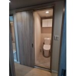 廊下に面した開きドアのため、安全性を考えて引き戸に取替えたい