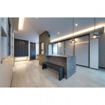 お⺟様と 同居するため、二世帯住宅にリフォームしま した。こちらは2階のリビング。壁や天井は全体的にグレーで統一することで、高級感を持たせています。