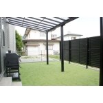 庭全体の人工芝だけでなく、大屋根のテラス、目隠しフェンスも加えて、安心してくつろげるスペースに。 工事が終わった後、お子様が楽しく走り回っていて、庭がキレイになって良かったとホッとしました。