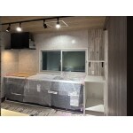 システムキッチンとカップボードを交換したい。 床、壁、天井の仕上げを好みの色、柄に張り替えたい。