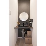 施主様と一緒に水廻設備のショールームを何か所か見に行く中で、実物を見て気に入っていただきました。 水栓や水栓金具は、こちらから寸法などが合うものをご提案しました。