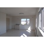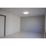 壁と下がり壁を撤去し1つの部屋へ。奥の勝手口と押入部分は減築しています。