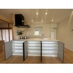 LDKで約35畳もある大きなお家でした。しかしキッチンをはじめ閉鎖的な空間が多くお家の大きさを感じることができない状態であったので壁付キッチンからリビングダイニングが見渡せる開放的な対面キッチンにして広く開放的な印象のあるお部屋にしました。