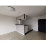 床下がコンクリートだったため配管を通すのが困難でしたが、キッチンスペースを床上げをして対面キッチンになるよう位置を移動させました。 背面側は広めにスペースを取ったため、入居者側で好みの家具や家電を配置できます。 収納がたっぷりのシステムキッチンを採用し、シンプルなモノトーンカラーで全体をまとめております。