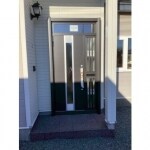 黒を基調とし非常にスッキリしたイメージとなりました。ランマ付もあり玄関内も非常に明るく心地良い空間が作れました。工期もたった1日で玄関ドアが交換できます。