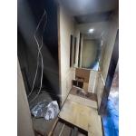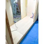 現調時に換気と排水が悪く湿気がこもっていたので、換気ダクトと配管勾配を改修すると同時に、床面を下げ廊下との段差を少なくする提案をしました。