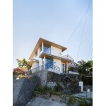 白系の色にすることで、軒の板張りの素材感とガラス窓との調和を生み出し、一等貸しのヴィラのような雰囲気に。 高台に建っているため、良くも悪くも地域の方の目に留まる存在でした。リノベーション後は大きく生まれ変わり、地域の憧れに。