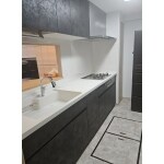 ステンレス製でお手入れラクラクなクリナップ ステディアを採用しました。 ロッシュチャコール面材とブラックの取っ手ラインの組合せがモダンな空間になりました。 使いやすく取り出しやすいキャビネットと目の前の高さに手動で手前に下ろせる収納庫ハンドムーブにすることで使い勝手が広がります。 ボタン一つでフィルターとファンが自動洗浄できる洗エールレンジフードは手で洗うより効率よく水を使うので節水にもなります。背面の食器棚も、キッチンとお揃いのカラーをお選び頂きました。