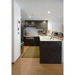 キッチンの間仕切壁を撤去し、開放的な空間に生まれ変わりました。 対面式キッチンをご希望でしたが、マンションの構造的に難しかったため、L型キッチンを採用して半対面式としました。