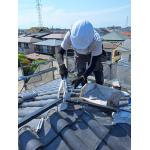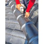 ながーい隅棟です、新しい漆喰が眩しく美しいですね、外観だけではなく、中の芯材も樹脂製に変更。建材は見えない所も大事です。