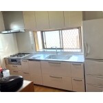クラッソを気にいっていただけ、レンジフードも掃除がしやすいタイプへ取替し、シンプルなデザインで統一感のある明るいキッチンへとなりました。